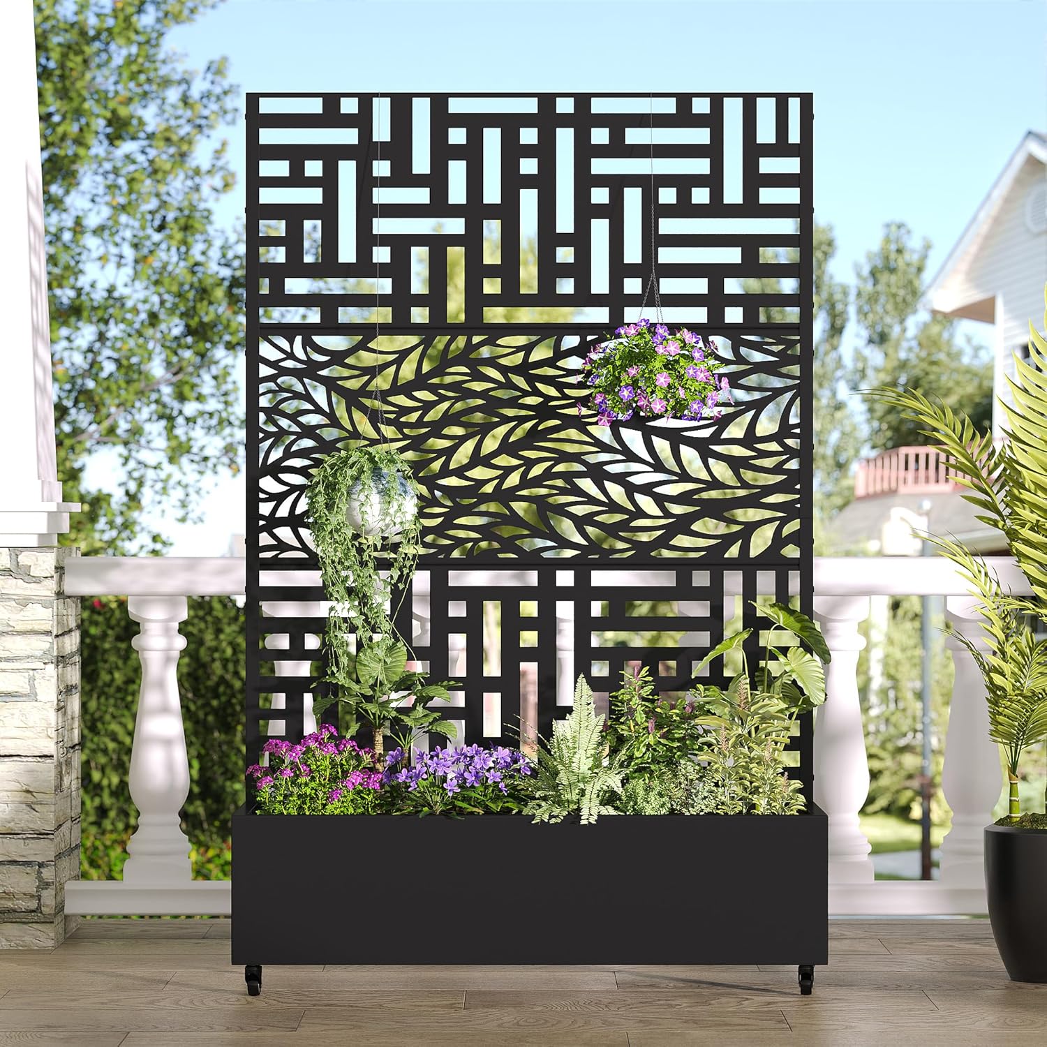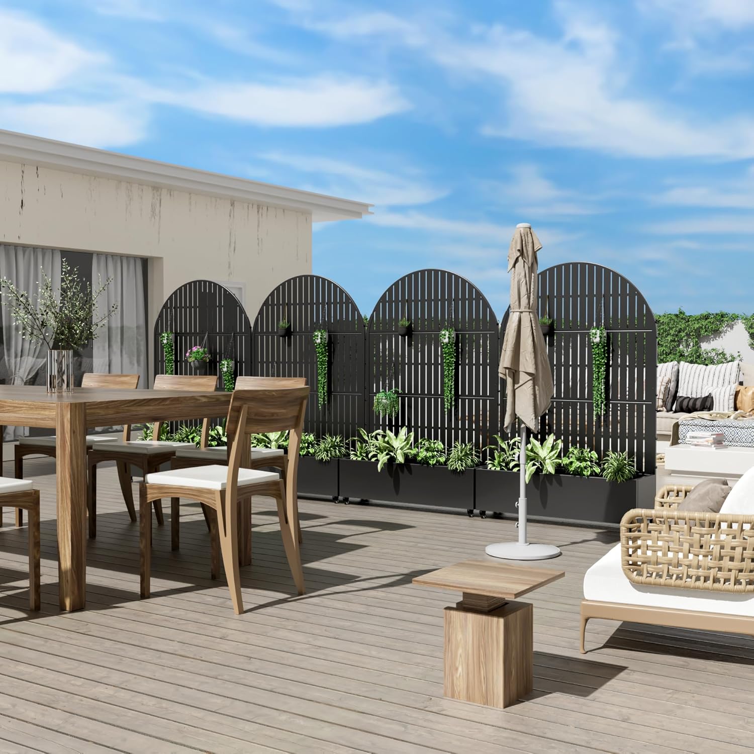 Casaphoria Metal Raised Garden Bed with Trellis and Wheels, 72"x47"x16" Arched Planter Box for Climbing Plants, Vegetables & Vines, Features Drainage Holes and Privacy Screen (Black-Fence)
