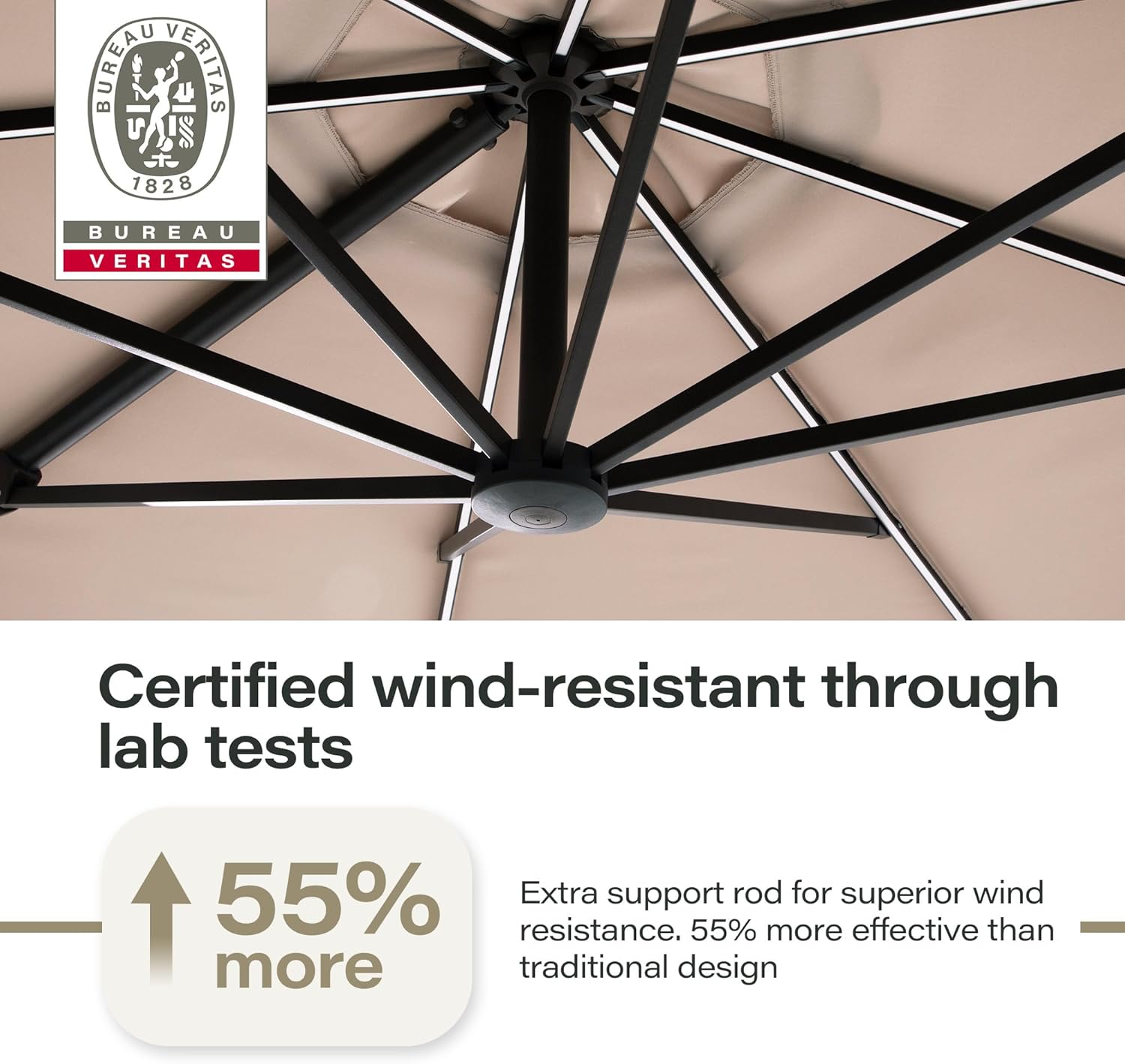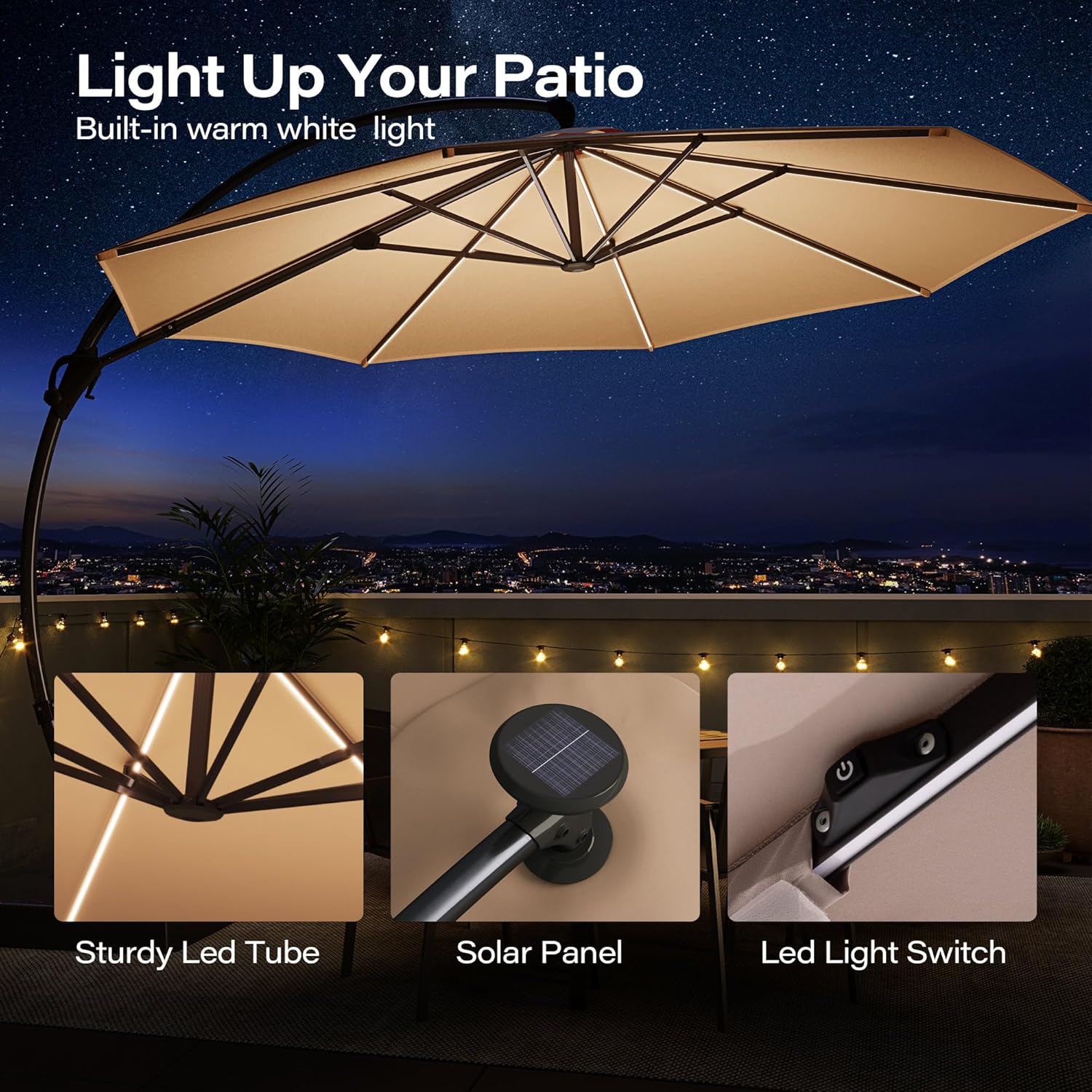 LAUSAINT HOME Outdoor Patio Umbrella,Curvy Cantilever Umbrella Heavy Duty Offset Hanging Umbrella with 360° Rotation for Market, Pool, Garden, Backyard
