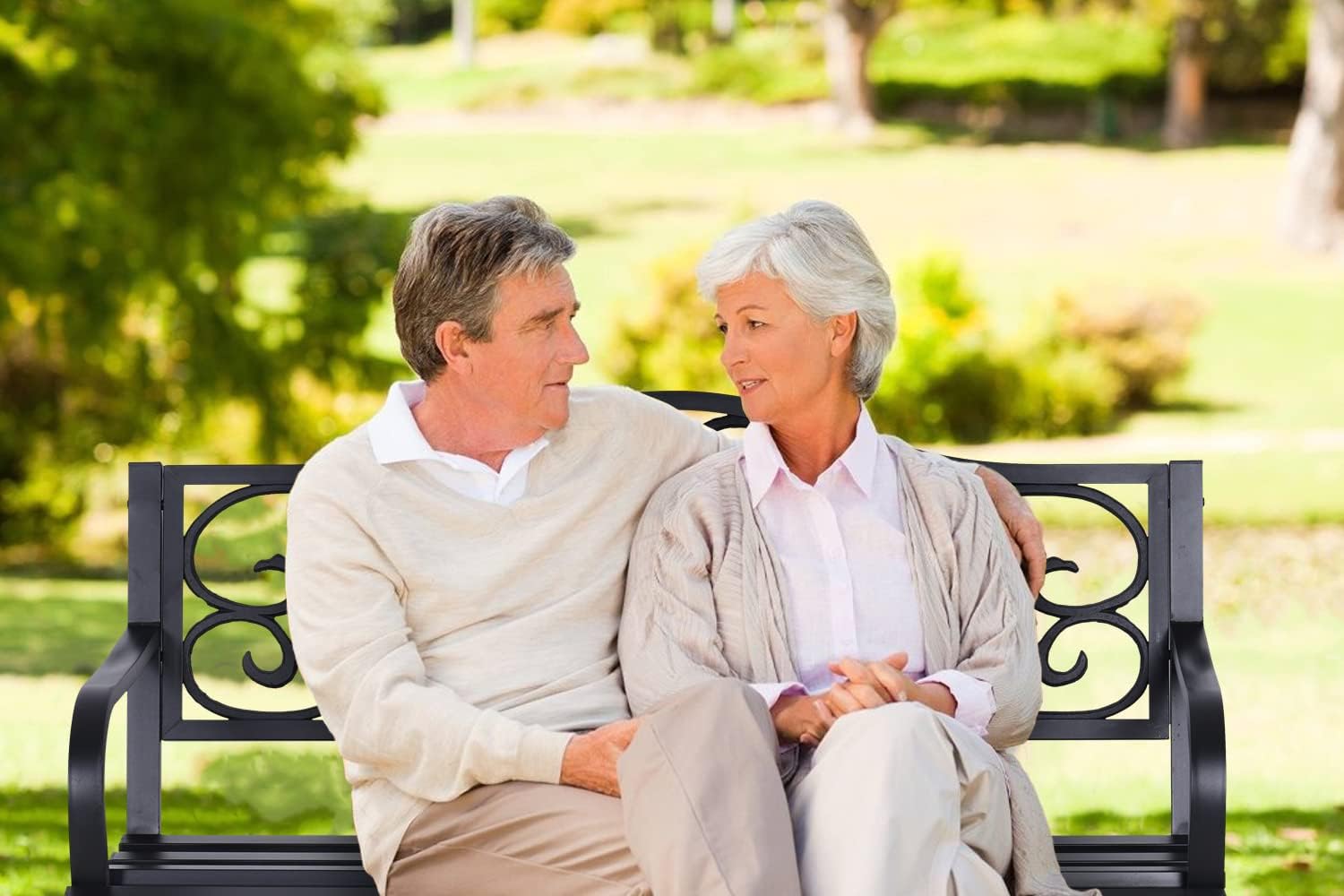 MFSTUDIO 50 Inches Outdoor Garden Bench, Cast Iron Metal Frame Patio Park Bench with Floral Pattern Backrest, Arch Legs for Porch Lawn Garden Yard(Black)