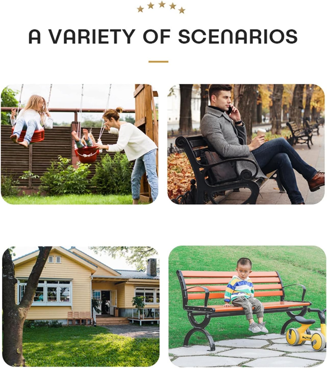 Outdoor BenchEnjoy the outdoor life to the fullestThank you for purchasing this product! We will continue to provide cordial after-sales service.Before removing or installing, make sure the product is in good condition.If you have any questions, please contact us immediately. We will get back to you within 24 hours.1. Due to manual measurement, there may be an error of 1 to 3 cm.2. Product color may vary due to light, angle, monitor differences, monitor contrast/hue saturation. Please refer to the actual product.3. We provide services wholeheartedly and hope our customers are satisfied with our products.