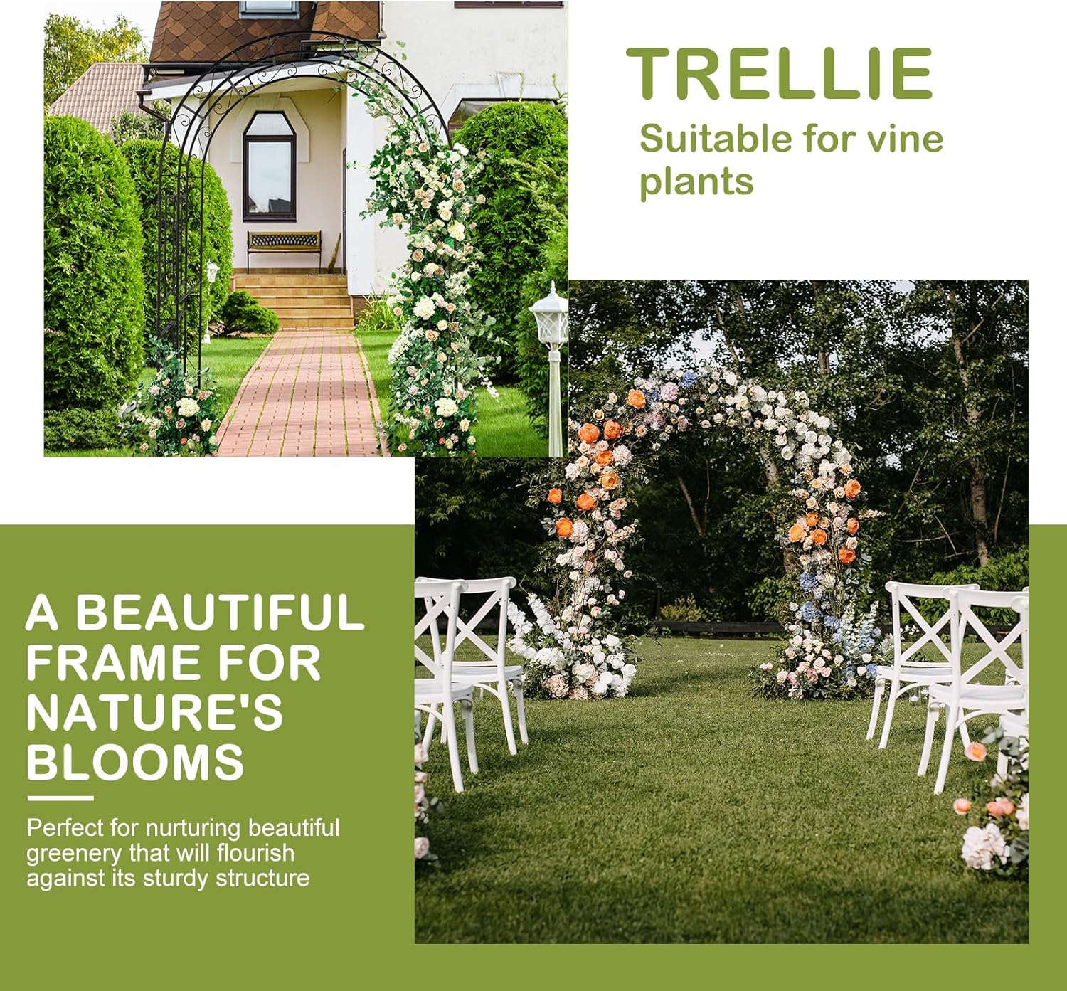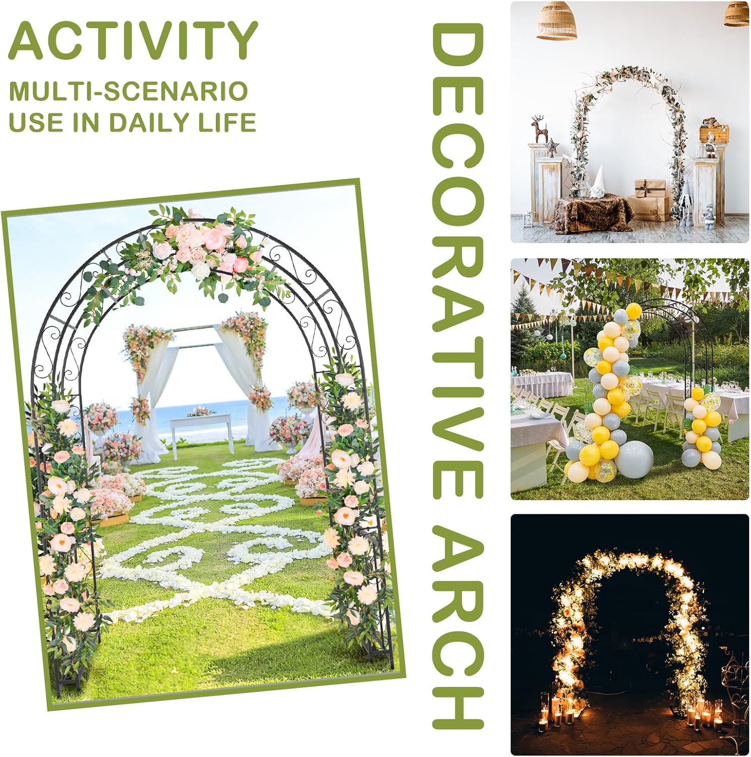 Outvita 7FT Garden Arch Arbor, Heavy Duty Metal Arbour Archway, Decorative Frame Stand Trellis with 7 Inch Ground Stakes for Wedding Ceremony Party Plant Climbing Rose Vines Lawn Courtyard Patio Black