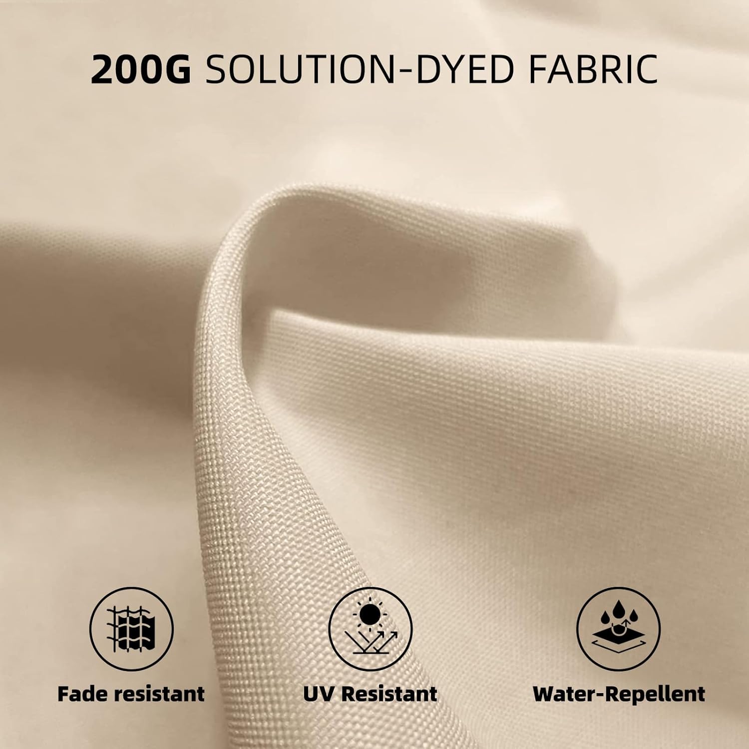 wikiwiki 10FT 3Tiers Solar LED Patio Umbrella with Base, Sturdy Outdoor Market Umbrella with Tilt, Crank and 32 LEDs for Terraces, Pool and Garden, Beige