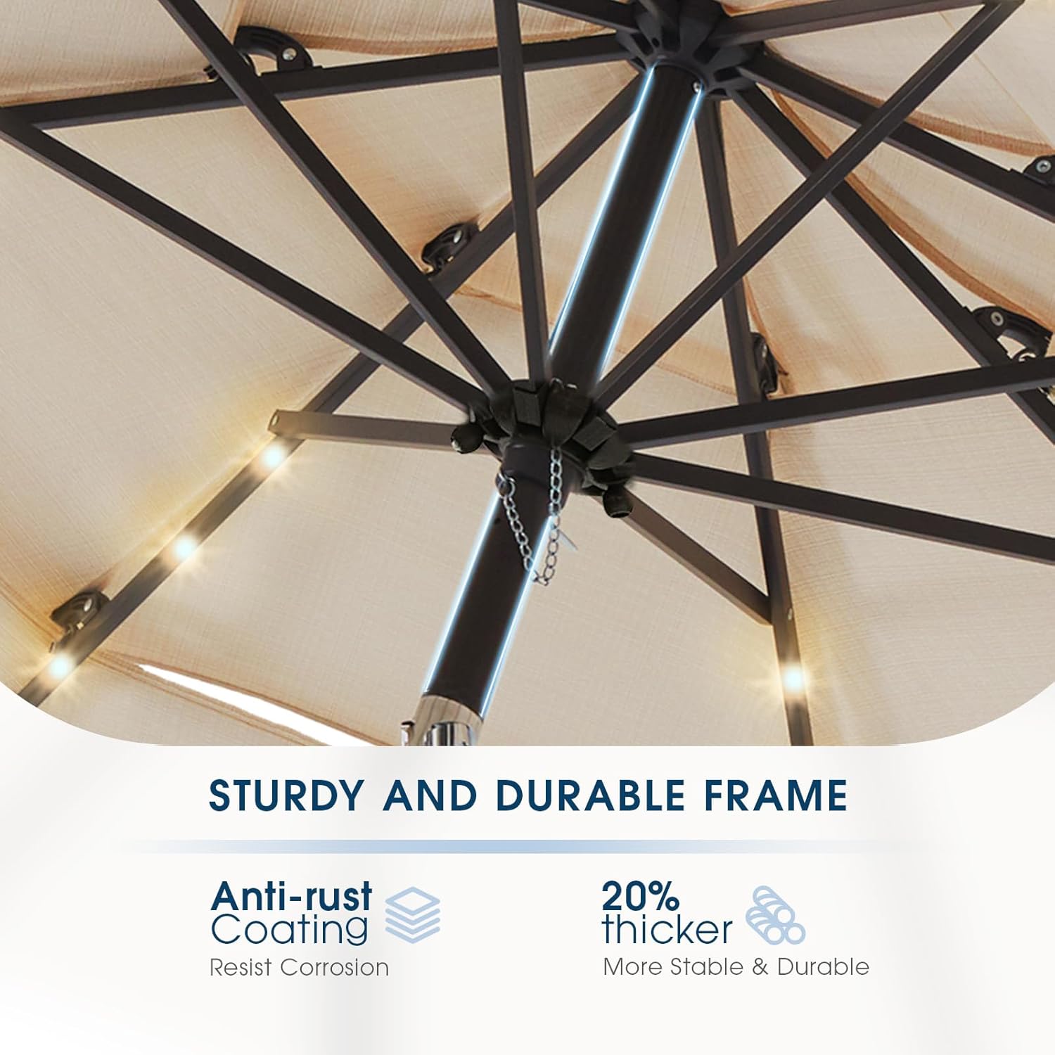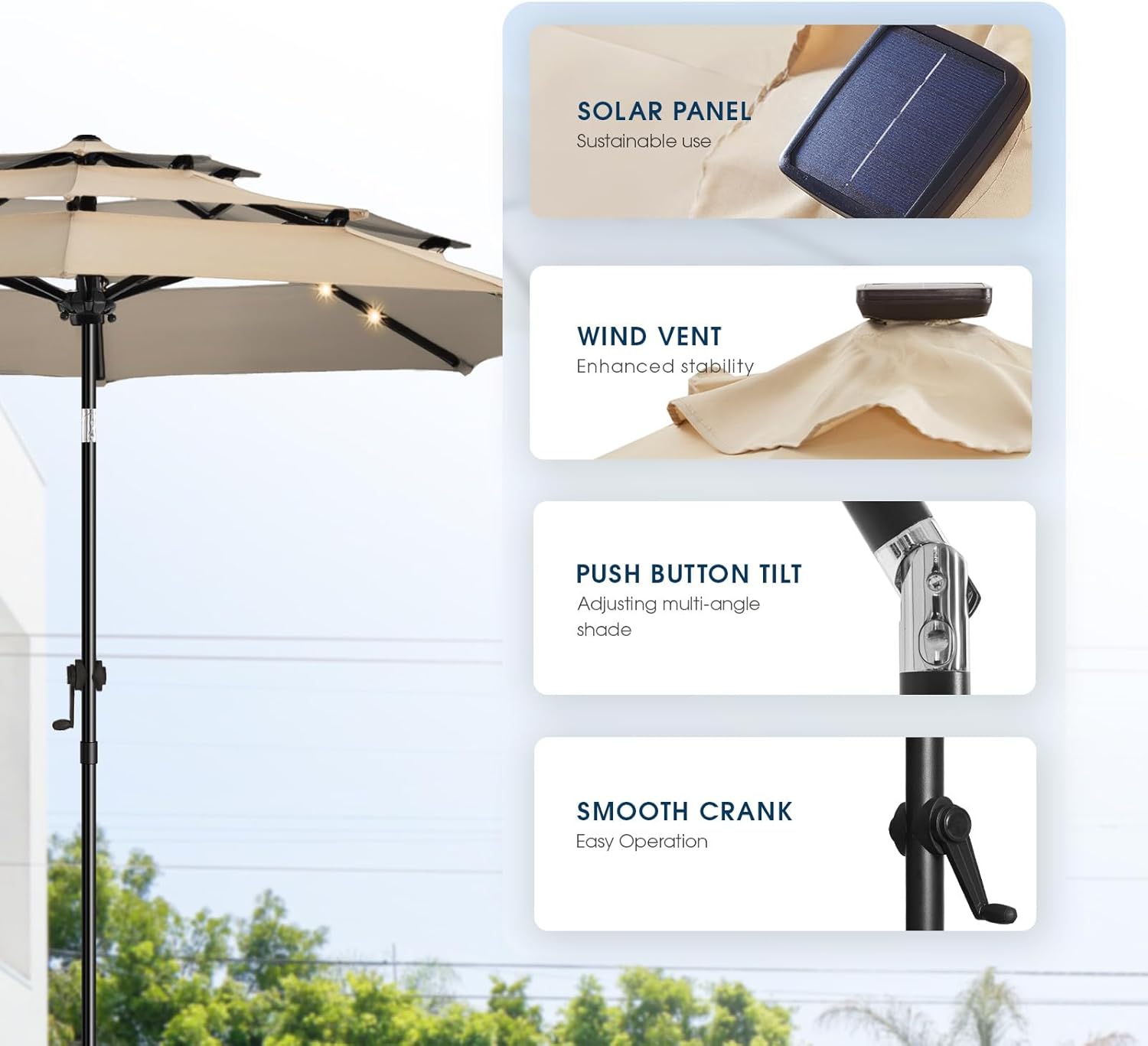 wikiwiki 9FT 3Tiers Solar Led Patio Umbrella, Sturdy Outdoor Market Umbrella for Deck, Pool, Garden w/Tilt, Crank, 32 LED Lights, Beige